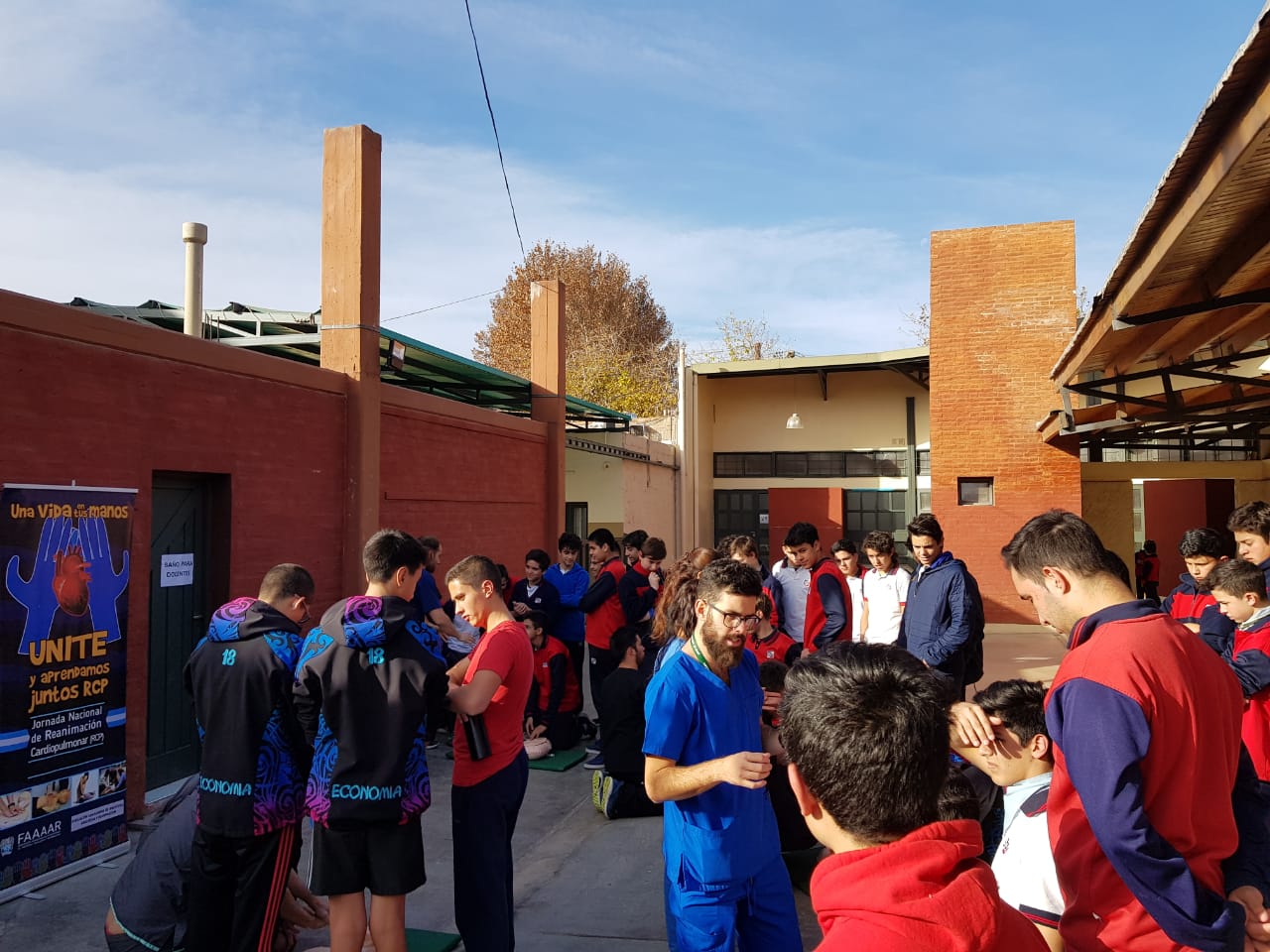 En el día de la fecha, los medicos residentes de anestesiologia y medicos anestesiólogos de la ASAAR estuvieron presentes en el Colegio Santo Tomas de Aquino, donde se llevo a cabo práctica de RCP básico.